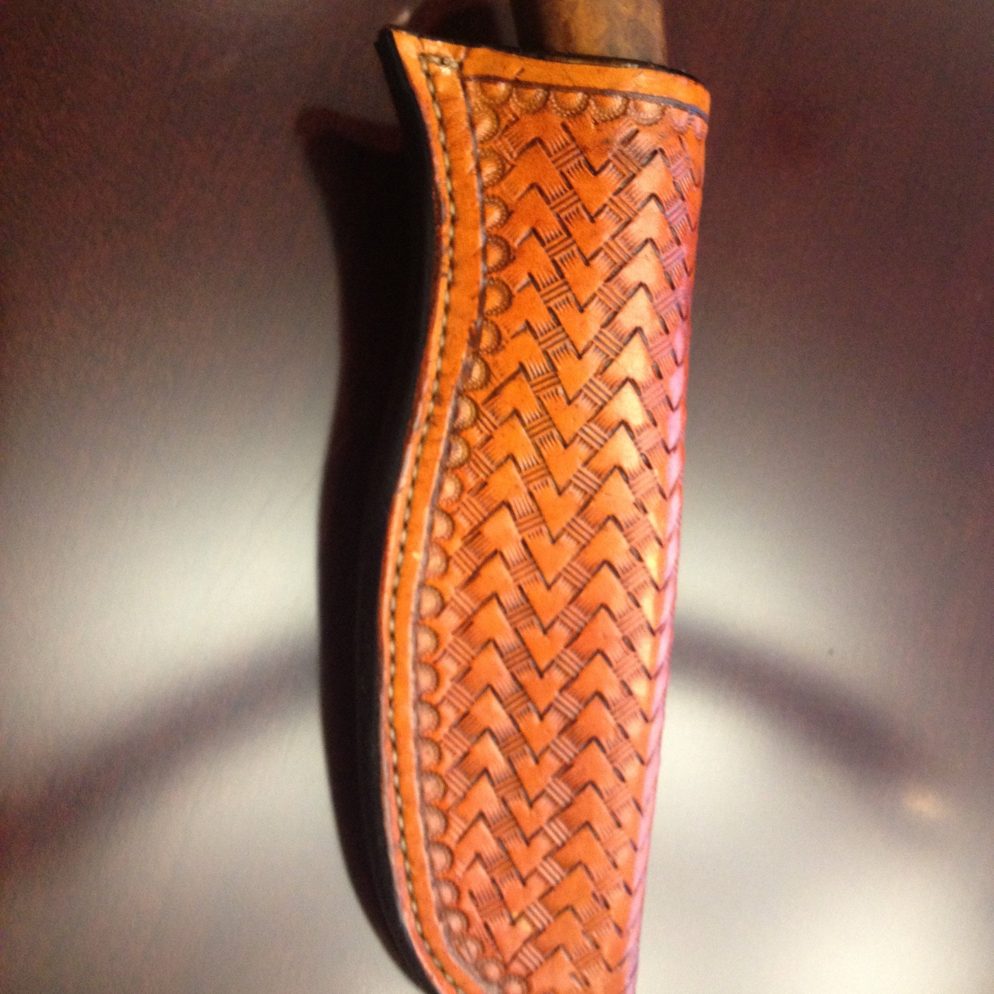 In this class you will learn the skills of how to make a nice and professional looking sheath for your fixed blade knife that you can be proud of. We will concentrate on the form, layout as well as tooling designs, stitching, dyeing and finishing of the leather. Tools, snaps and heavy leather will be provided for a knife with up to a 7” blade.