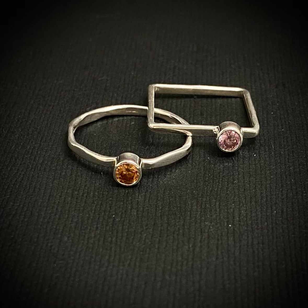 Have you taken my Stacking Rings or Square Stacking rings class? Want to add some bling to your stack ? Or maybe you have always wanted to try your hand at tube setting? Then this is the class for you. You can choose to make round or square rings. You will have enough material to make 2 rings with tubes/stones. There are about 10 colors of 4 mm cz stones to pick from. The rings stack well with stacking rings you have made previously . This class is not suited for beginners. If you have taken one of my stacking rings classes, or have torch experience, you will be fine.