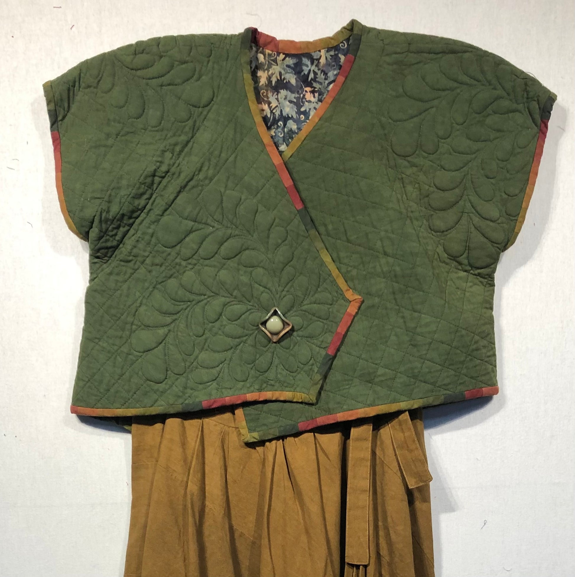 Please join me for a lecture on garments that use quilting for embellishments, blend textures, dimension and craftsmanship to elevate the fabric beyond its functional purpose. Whether subtly stitched into collars and cuffs or quilted throughout the whole garment, quilting transforms clothing into wearable art. I will bring examples of my own work to add to the discussion.